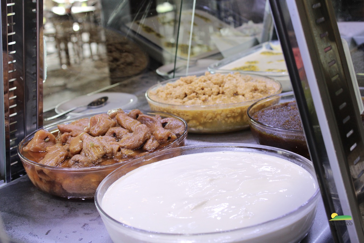 * Ovos Mexidos, Salsicha ao molho sugo, Sanduíche Natural, Pão de Queijo e Chipa.
